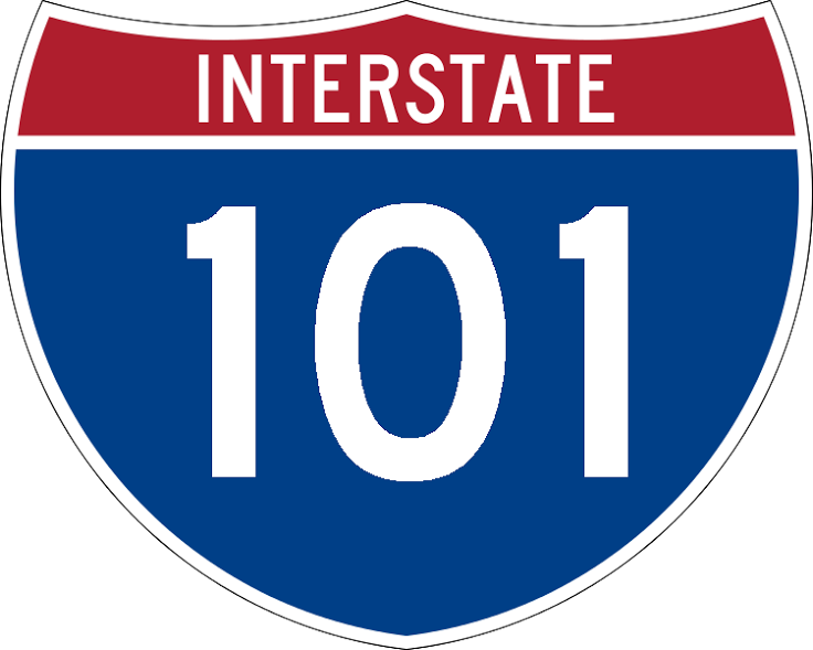 Interstate 101 (I-101) is the recurring character in Intertropolis & Routeville. She is a female Interstate Highway shield who loves traveling and is good at reading maps, signs and directions. She is one of the 23 members of the Main Interstate Highway signs living in the Main Highway Lounge of Intertropolis. She is one of the two only Main Interstate individuals in the group whose numbers ending with a "1" instead of a "0" and a "5". The other one is I-1.